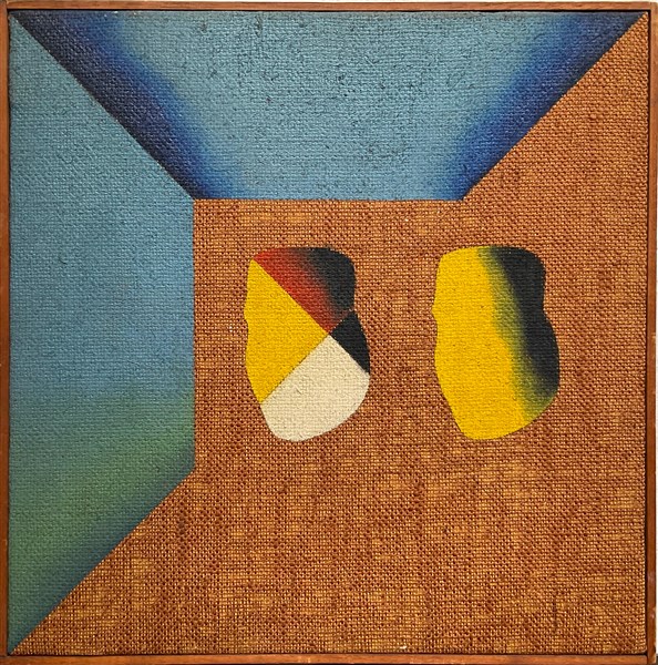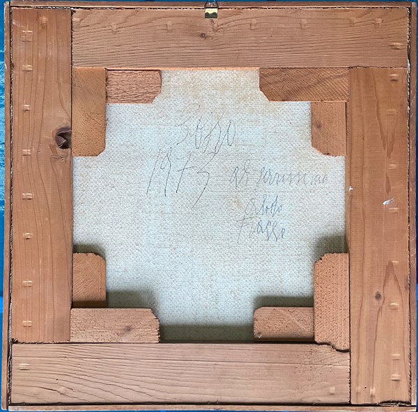 Enzo Bosco "Senza titolo" 1973 olio su tela cm 40x40 firmato, datato e dedicato