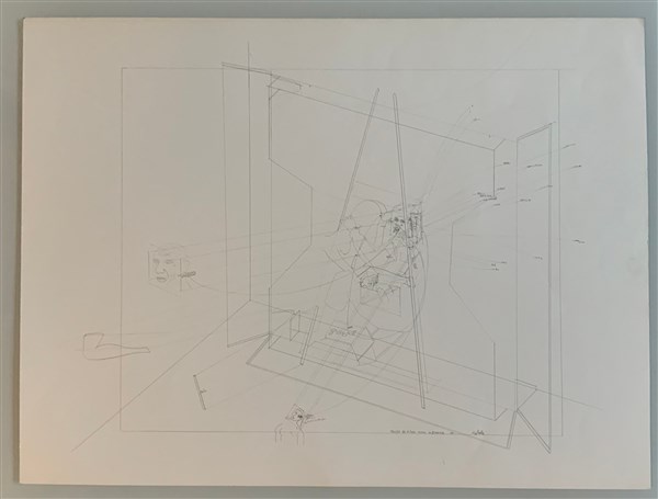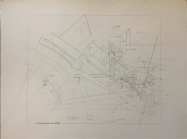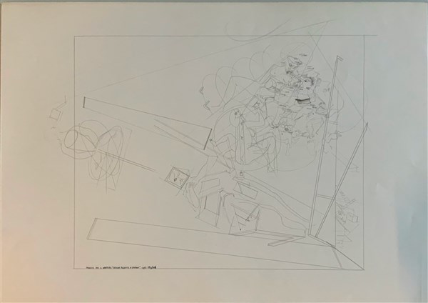 "Progetto per il quartiere "Qualche pezzetto di Giovanni" 1975, matita su carta, cm 50x67, firmato, titolato e datato in basso a sinistra