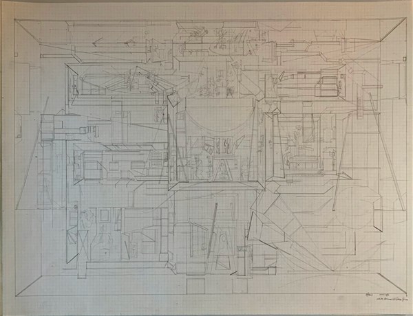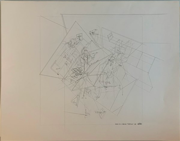 "Schizzo d'assieme della Grande Opera" 1974, matita su carta quadrettata, cm 49.5x69.5, firmata, titolata e datata in basso a destra;