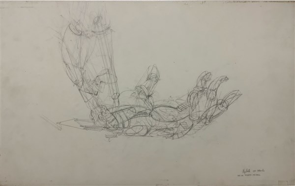 "Part. per "Atlanta - opus epico" 1980, matita su carta da lucido, cm 31.5x50.5, firmata, titolata e datata 1980 settembre in basso a destra;