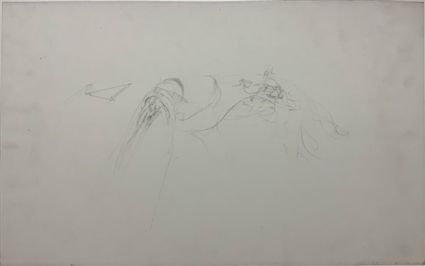 "Senza titolo" schizzo a matita su carta da lucido, cm 31.5x50.5, non firmato