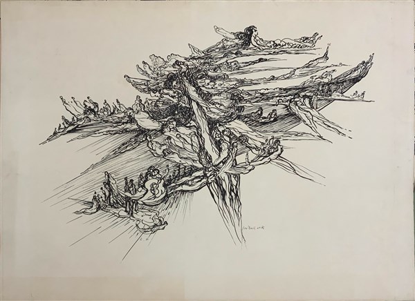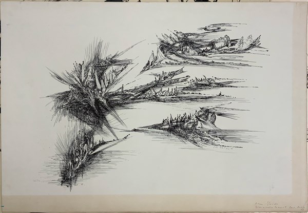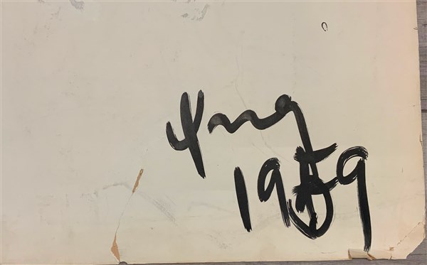 Firma indecifrata, "Senza titolo" 1959, china su cartoncino, (cm 100x69,5), firmato e datato 1959 al retro