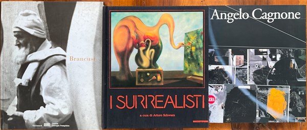 Cartone contenente nove monografie di artisti di Arte moderna, tra cui Magritte, Ferroni, Brancusi ecc.