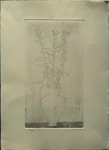 Omiccioli - Sgarzi Lotto composto da un'acquaforte raffigurante vaso con rose (f
