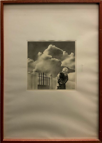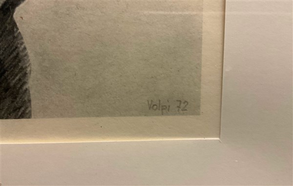 Lotto 2136 | Luigi Volpi "L''uomo e le nuvole" 1972 matita su carta cm 34,5x46,5 Firmata e da