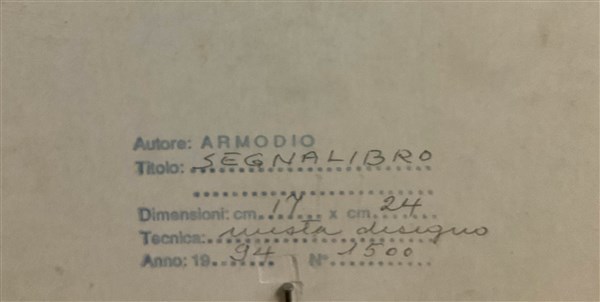 Armodio "Segnalibro" 1994 matita su carta cm 24x17 firmata e iscritta in basso a