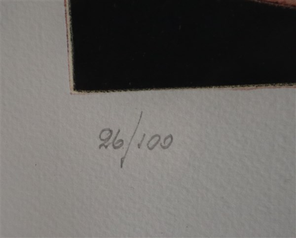 firmata, datata e numerata 26/100 in basso a matita. In cornice (difetti)
