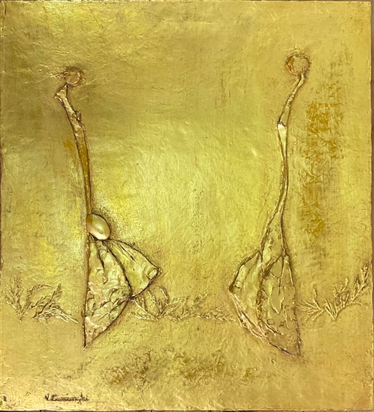 Lotto 2165 | Virgilio Ciminaghi "Confidenze" 1978 bassorilievo in metallo dorato cm 40,5x35,5