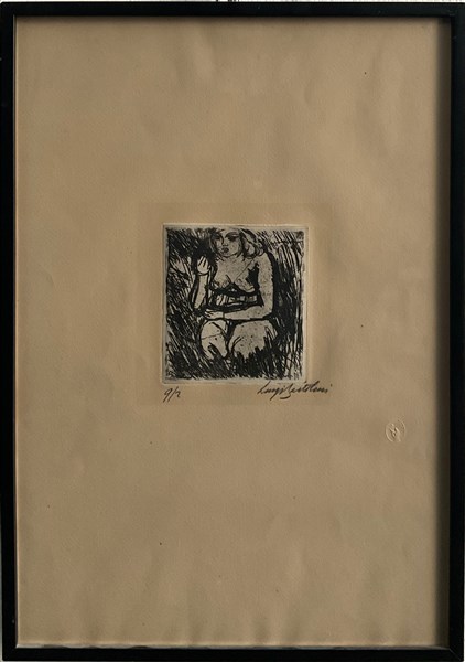 Luigi Bartolini "Donna seduta" 1942 acquaforte (lastra cm 12x10,8; foglio cm 47x