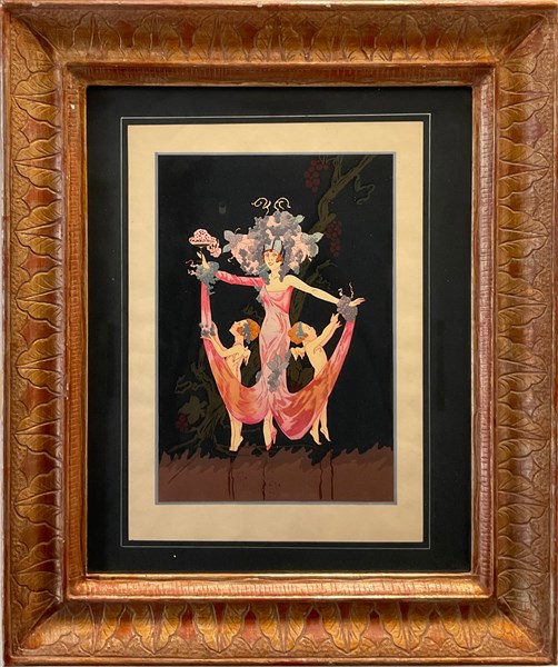 Ignoto, pochoir su carta di soggetto Déco cm 47x32. In cornice (lievi difetti)