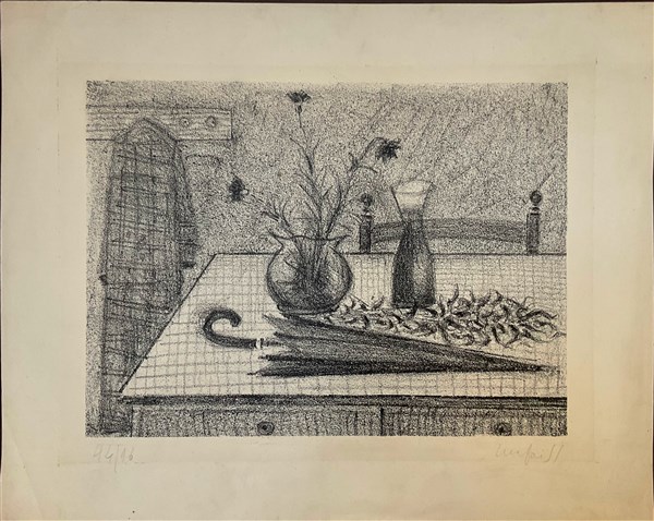 Mario Mafai "Natura morta con ombrello" 1955 litografia cm 34x44 firmata, datata