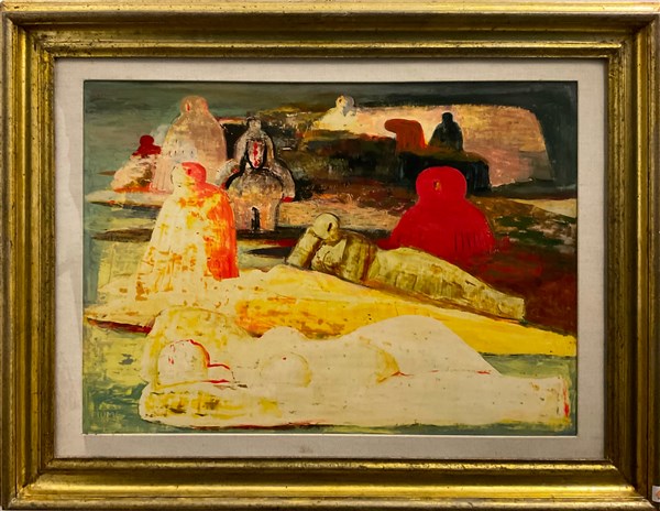 Salvatore Fiume "Isole di pietra" olio su masonite cm 51,5x70 Firmato in basso