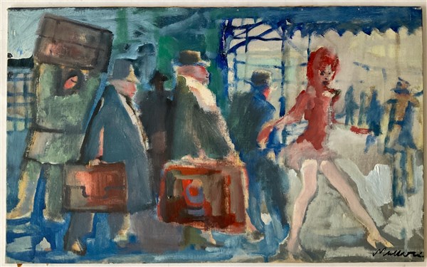 Mino Maccari "Senza titolo" Anni '60 tempera su cartone telato cm 30x49 Firmato