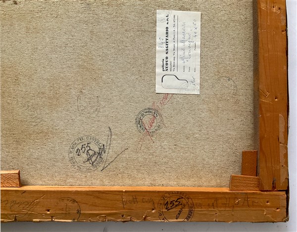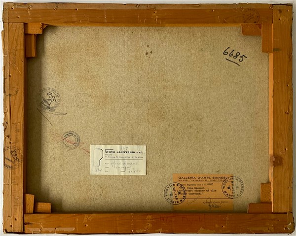 Galleria d'Arte Sianesi, Milano (etichetta al retro); Galleria d'Arte Nuovo Sagittario, Milano (etichetta al retro)