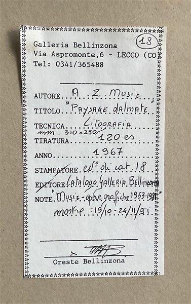 Antonio Zoran Music "Paysage Dalmate" 1967 litografia a colori cm 27,5x32,5 firm