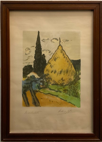 Lotto 2225 | Ardengo Soffici "Pagliaio e cipressi" 1962 litografia a colori - prova d'artista