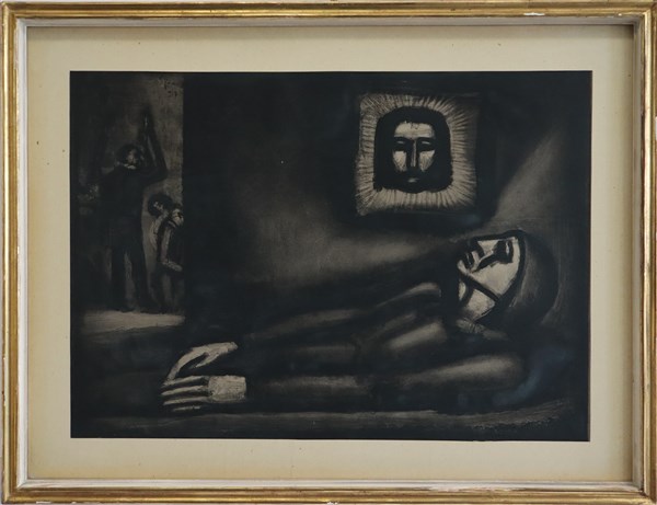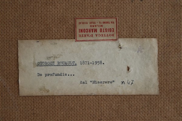 Firmata e datata in lastra in alto a sinistra. Dalla serie "Miserere", etichetta al retro della Bottega d'Arte Egisto Marconi, Milano