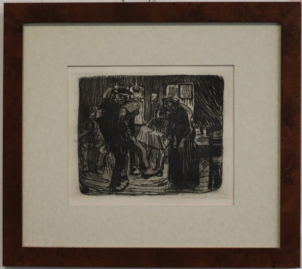 Lotto 2228 | Kathe Kollwitz "Hamburger Kneipe" vernice molle lastra cm 19x23. In cornice Pr