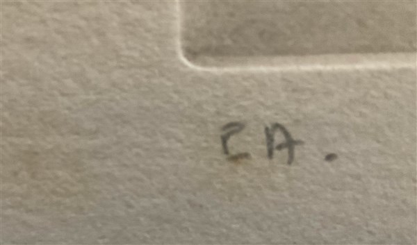 firmata in lastra in basso a destra; firmata e iscritta CA. in basso a matita. In cornice (difetti)