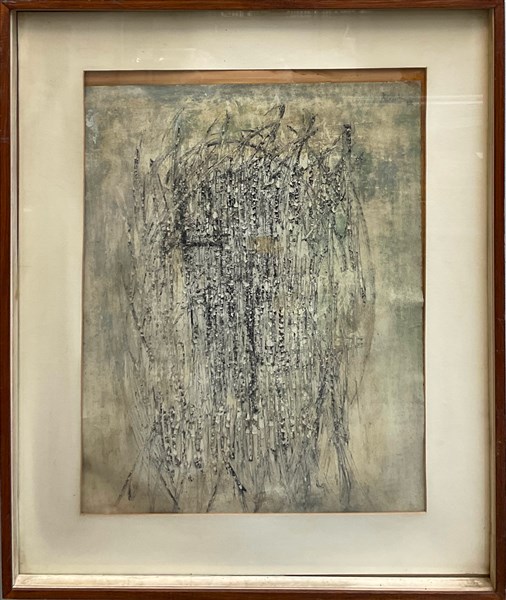 firmato e datato '59 in alto a destra e recante etichetta al verso con i dati dell'opera. In cornice (difetti)