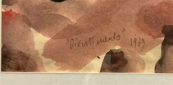 Mario Raciti "Divertimento" 1979 tecnica mista su carta cm 49x36 titolata e data