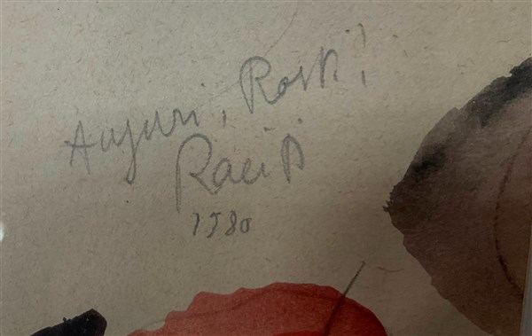 titolata e datata 1979 in basso a sinistra a matita, dedicata e datata 1980 a destra a matita. In cornice (difetti)