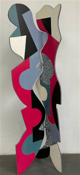 Lotto 2307 | Rino Crivelli "Eros Fabula" 1992 scultura in legno sagomato e dipinto h cm 183 f