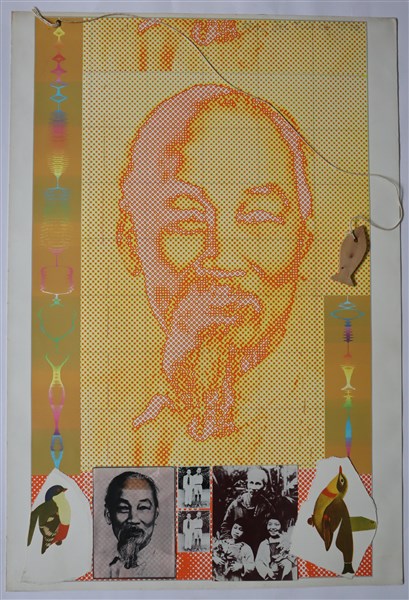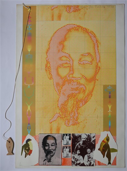 Joe Tilson "Ho Chi Minh" 1970 serigrafia, collage e pesce di legno cm 103x70 fir