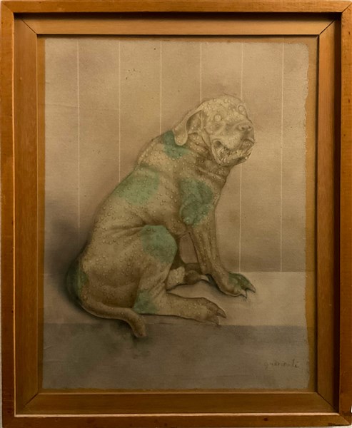 Carlo Guarienti "Cane" tecnica mista su carta intelata cm 45x34 firmata in bass