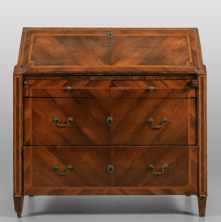 Ribalta Luigi XVI a due cassetti più due, lastronata in palissandro e filettata in bois de rose, Genova fine sec.XVIII