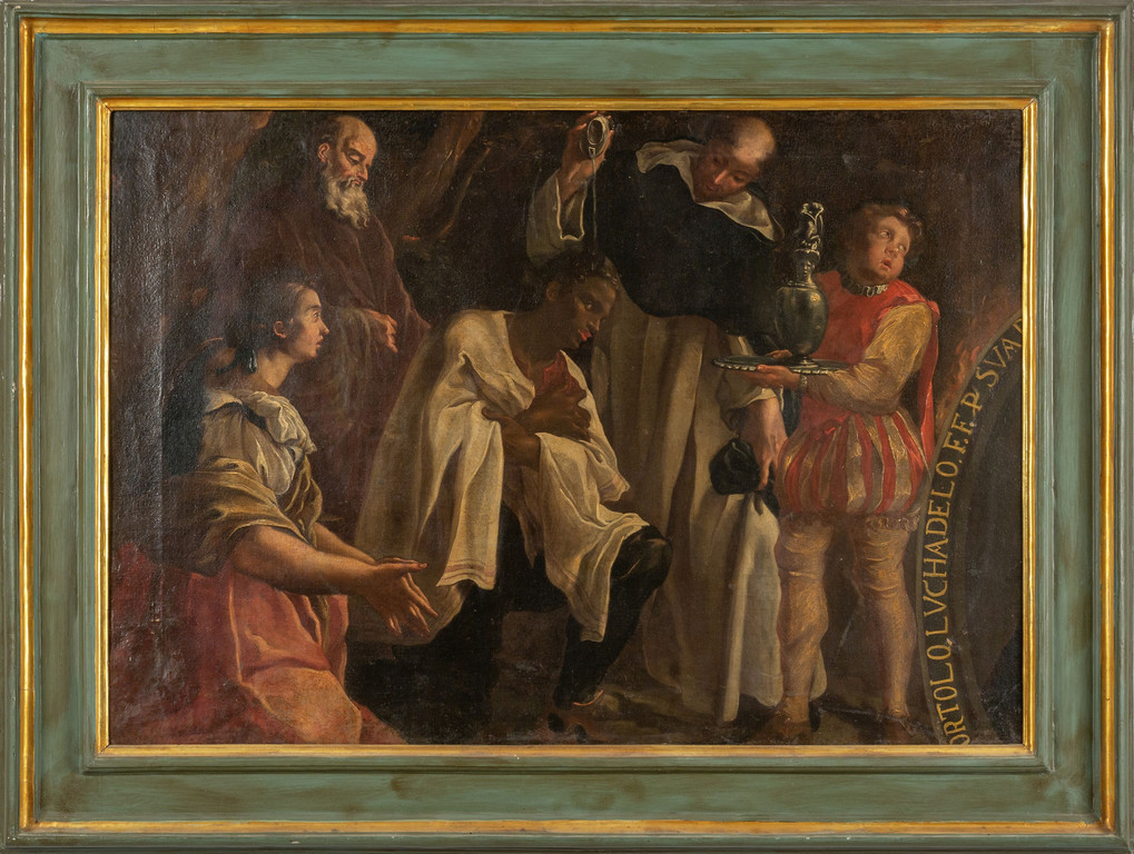 Scuola emiliana sec.XVII "Il Battesimo di un converso" olio