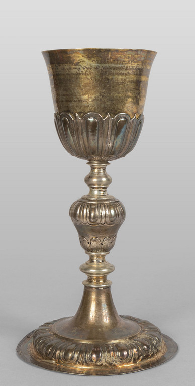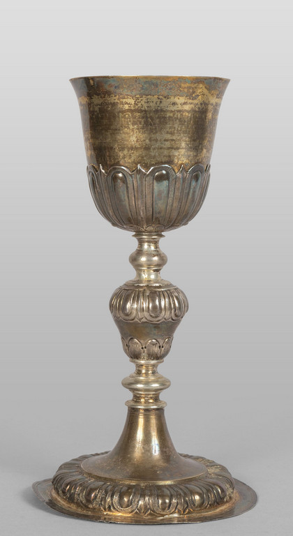 Calice in argento sbalzato, sec.XVIII<br>h.cm.23