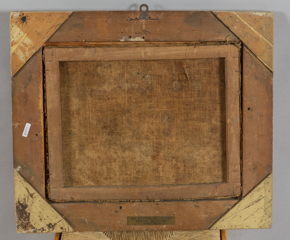 Scuola fiamminga sec.XVII "Animali da cortile" olio, cornice covea in legno intagliato e dorato