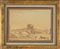 "Il ponte di Pavia" disegno a matita ed acquarello, cornice coeva in legno intagliato e dorato