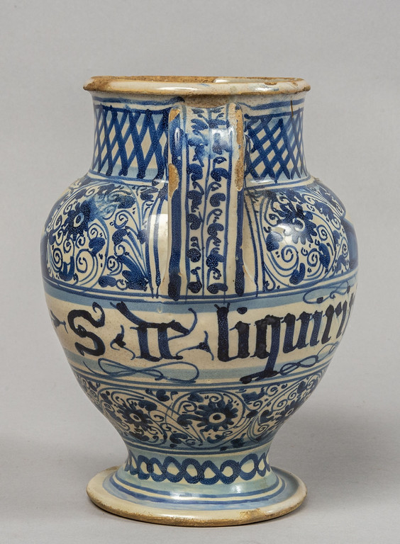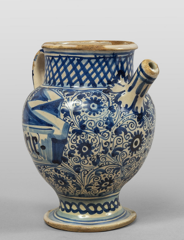 Brocca in ceramica, decorazione bianca e blu, Pesaro sec.XVIII