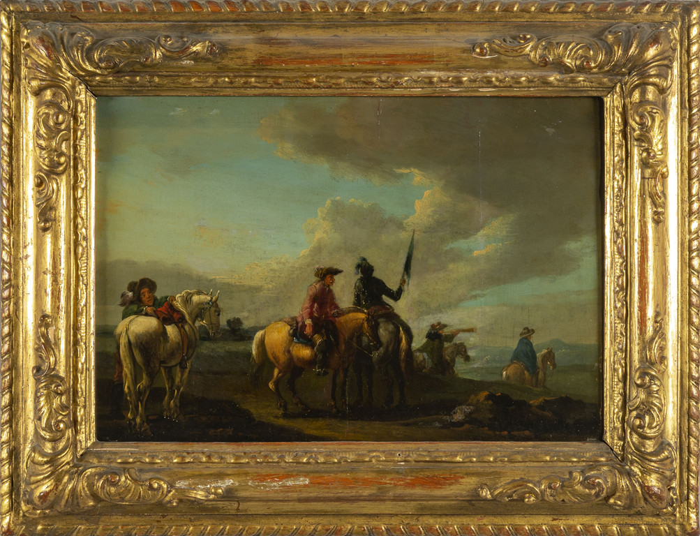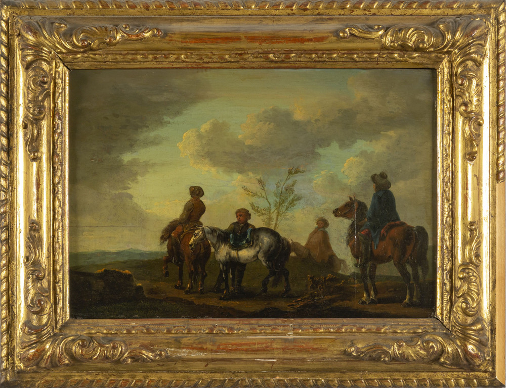 Scuola fiamminga sec.XVIII "Sosta di cavalieri"
