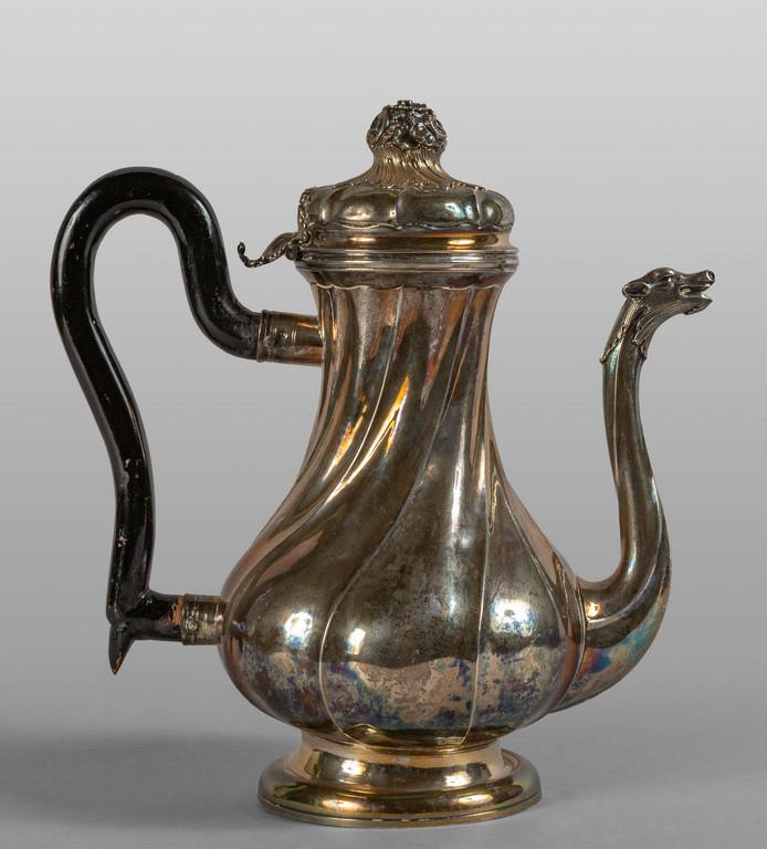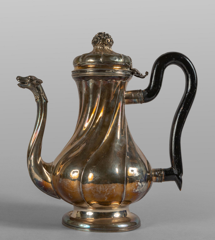Caffettiera Luigi XV in argento sbalzato, Genova