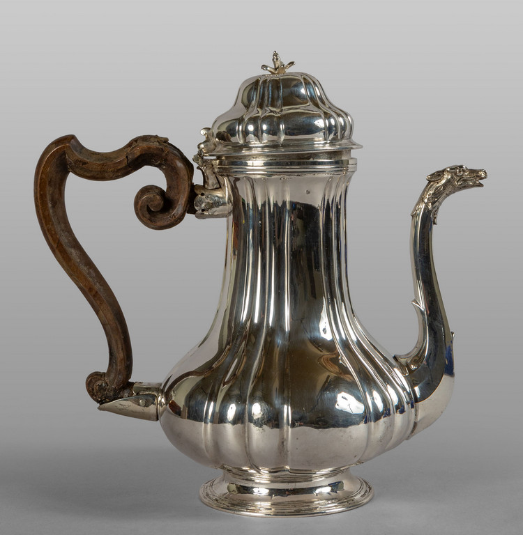 Lotto 0221 | Caffettiera Luigi XIV in argento a coste dritte,