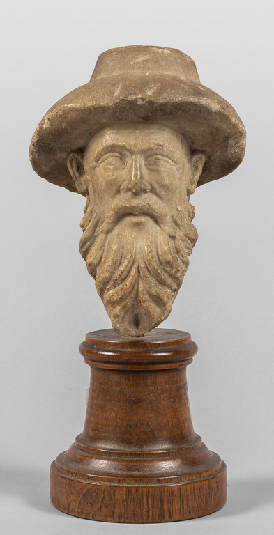 Testa di uomo con cappello, scultura in marmo di Candoglio, fine sec.XV
