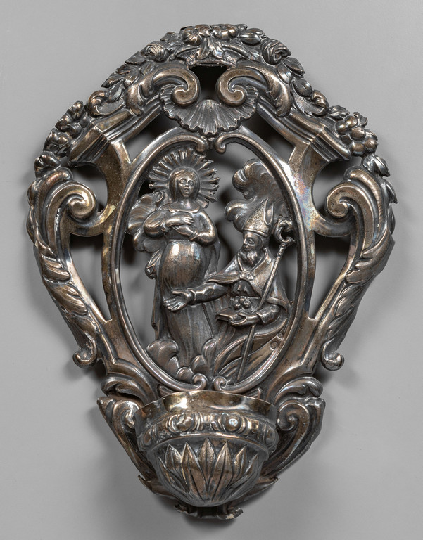 Lotto 0016 | Acquasantiera in argento sbalzato raffigurante