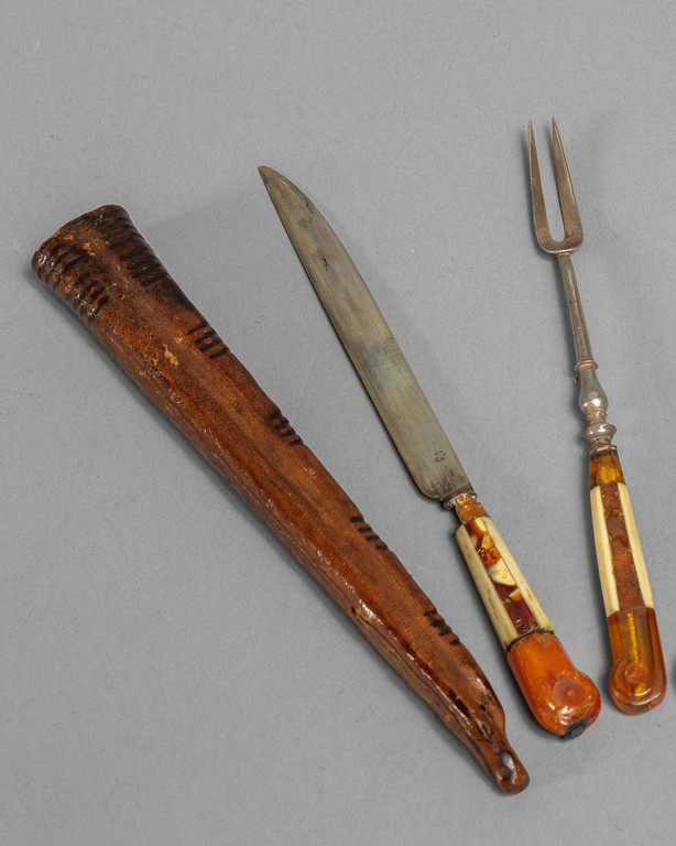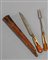 Coppia di posate da viaggio in argento, ambra ed