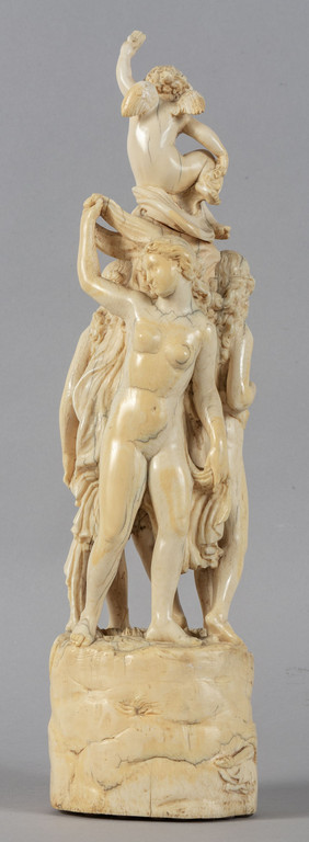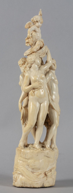 Vestali danzanti e putto, gruppo in avorio fine