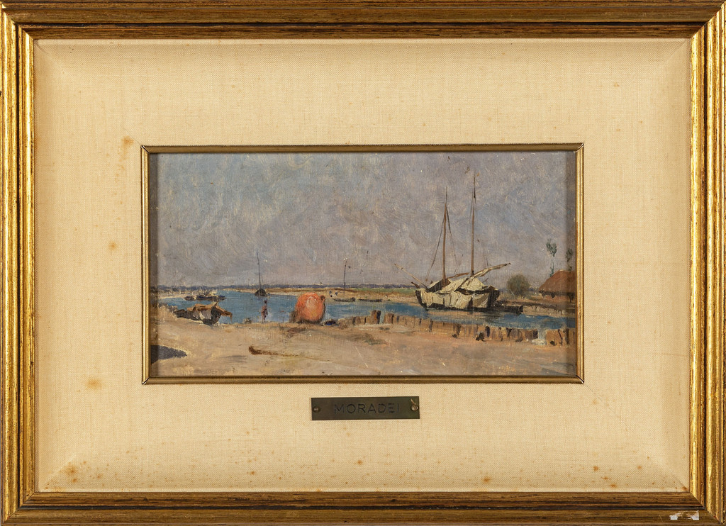 ARTURO MORADEI (1840-1901) <br>Barche nel canale,