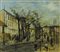 Benevento Luigi Vecchio passaggio a livello FNM, 1983 olio su masonite, cm 50x60 firmato in basso a destra, firmato, intitolato e datato al retro, certificato dell'artista al retro