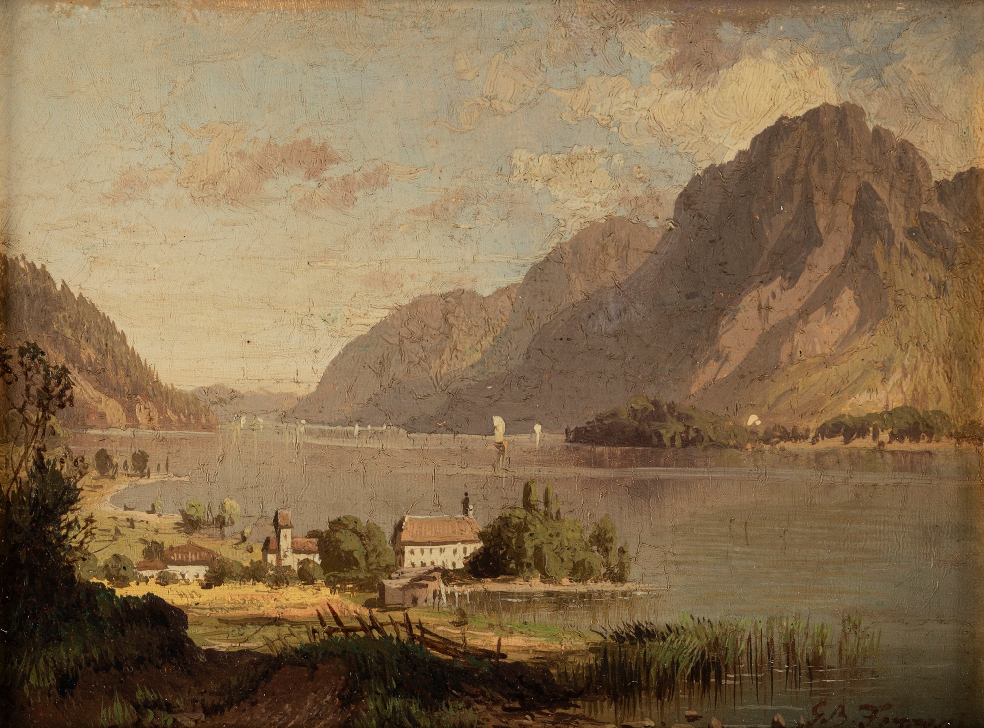 Giovanni Battista Ferrari (Brescia 1829-Milano 1906) - Scorcio del lago di Lugano