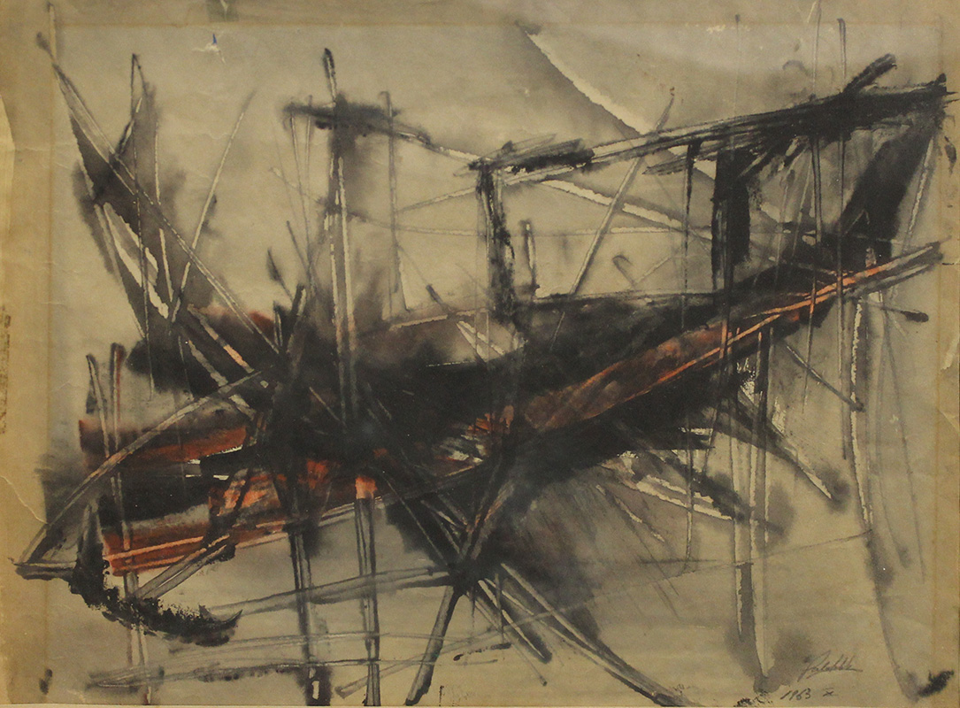 Anonimo Senza titolo, 1963 tecnica mista su carta, cm. 33x49 firma illeggibile e data in basso a destra, piccoli strappi sul margine del foglio