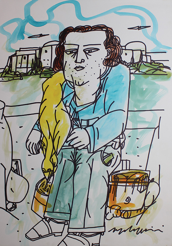 Tapparini Ugo L'uomo e l'uccello tecnica mista su carta, cm. 70x50 firmata in...