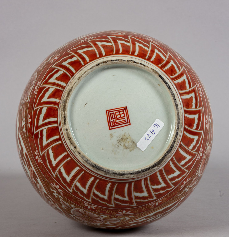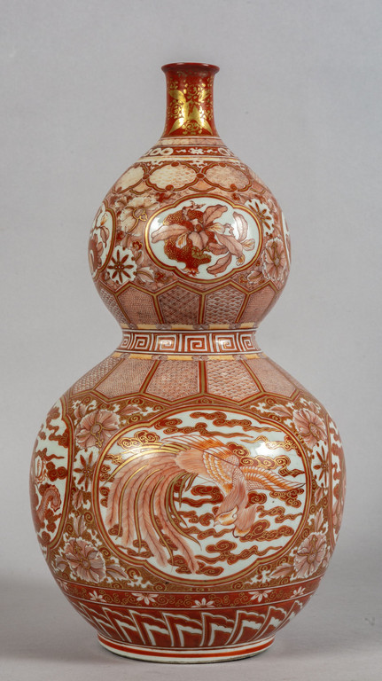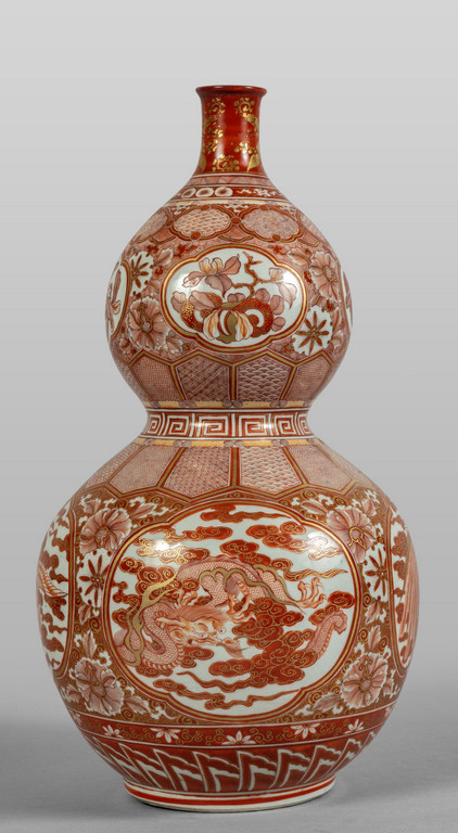 Vaso a forma di zucca in porcellana decorato in rosso e oro, Giappone sec.XX