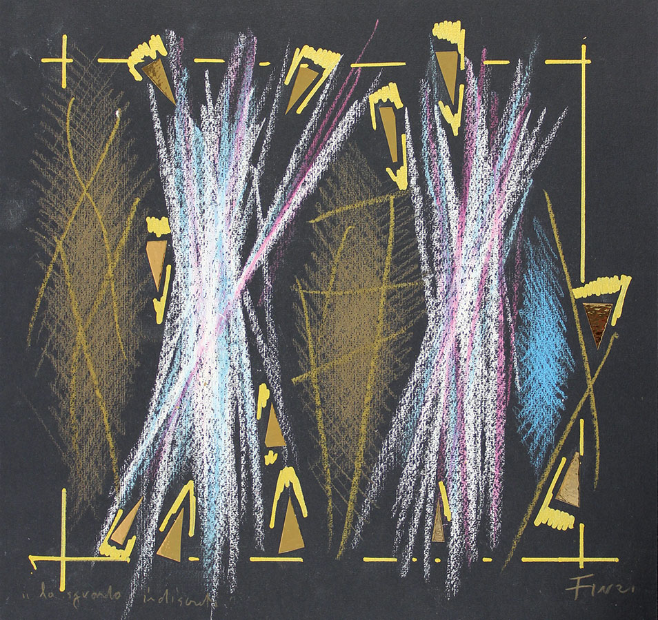 Finzi Ennio Lo sguardo indiscreto tecnica mista e applicazioni su cartoncino...