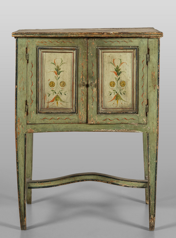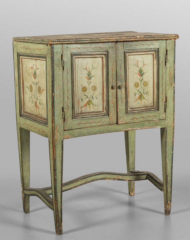 Comodino Luigi XVI in legno laccato a due sportelli, Marche sec.XVIII
